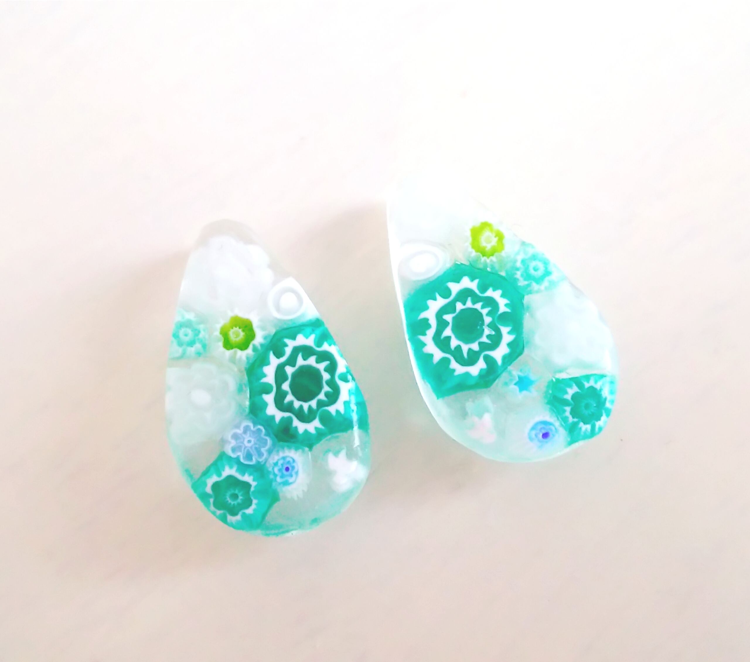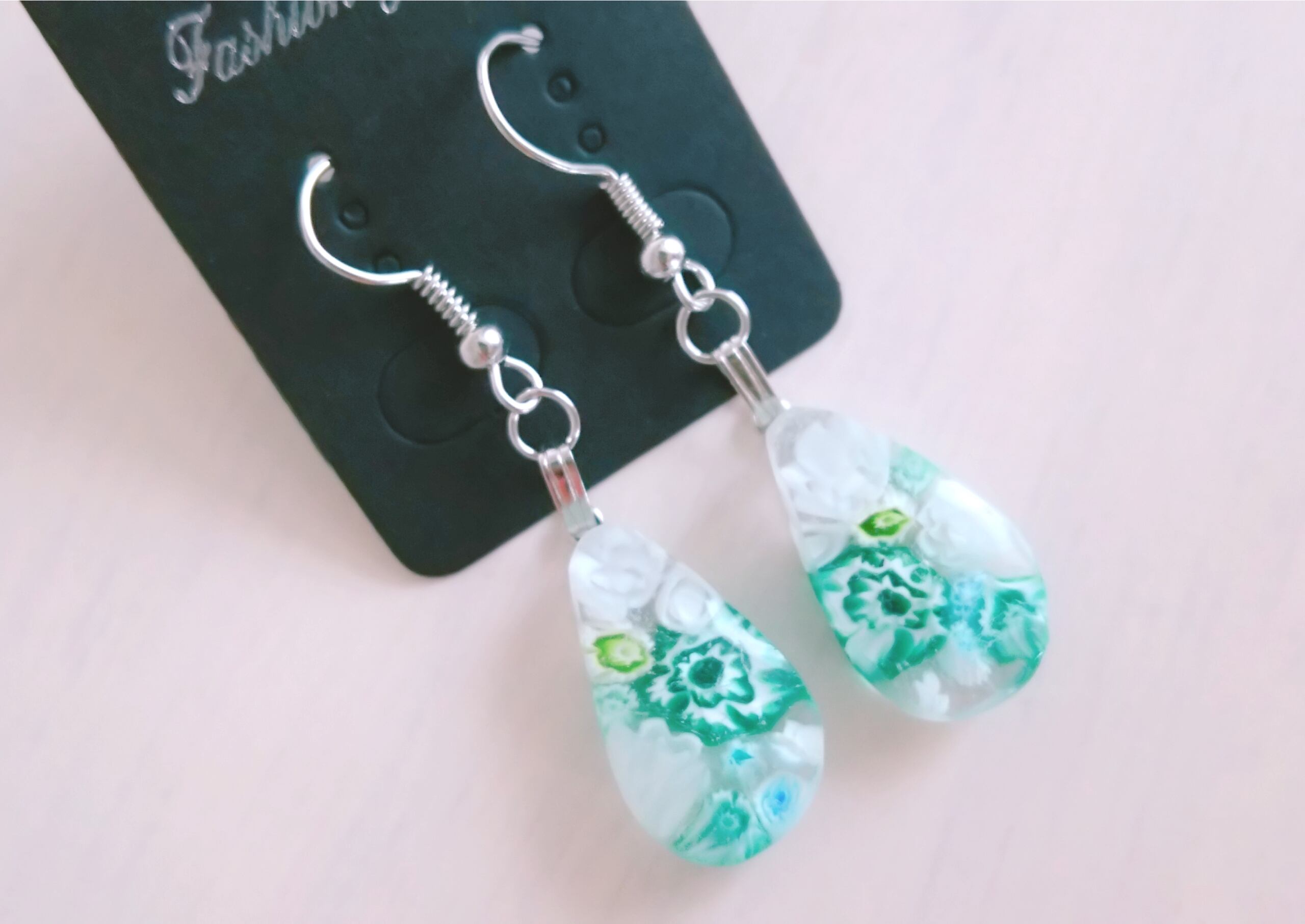 ミニしずく型のミルフィオリピアスになります。金具をゴールドにも変更可能です。