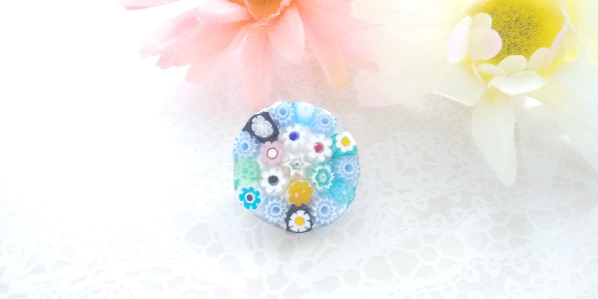 ガラス細工の一種で、金太郎飴のように模様が入っているガラス棒を使用して作った製品の事で、イタリア語の「Millefiori」とは「千の花」という意味です。