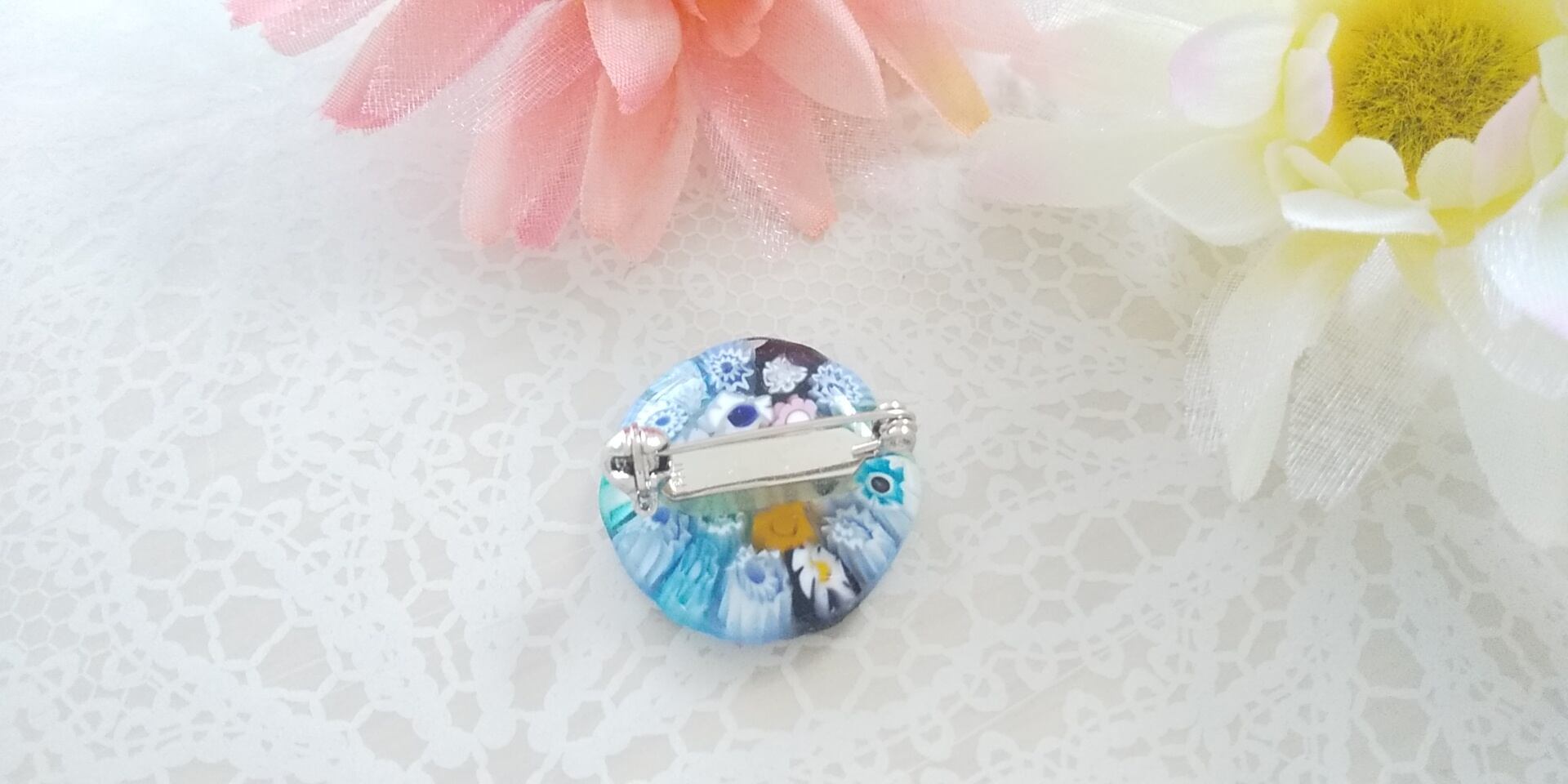 ミルフィオリのブローチ部分に、チェーンや紐を通すとネックレスにもなりますので、2way楽しめます♪