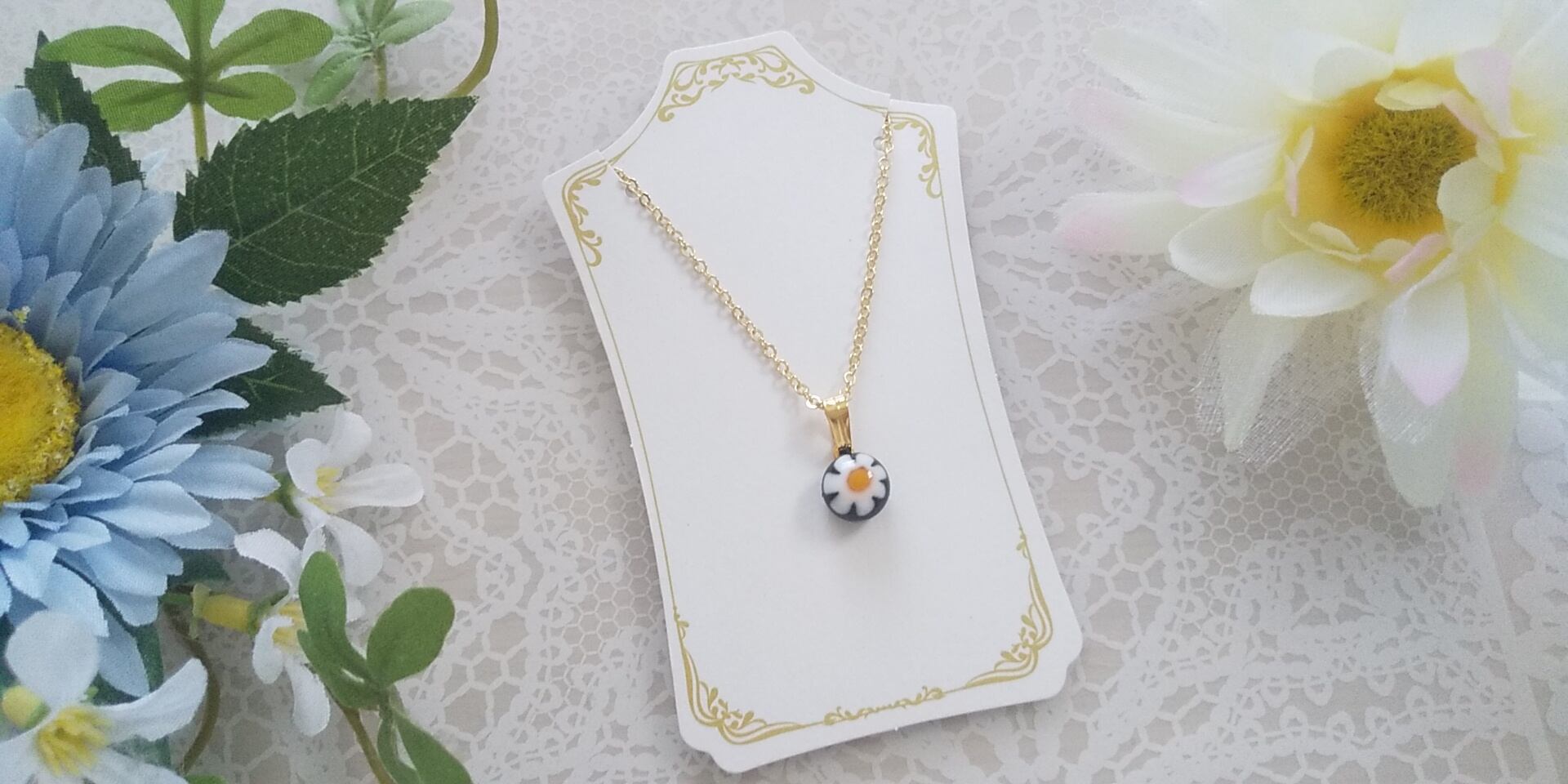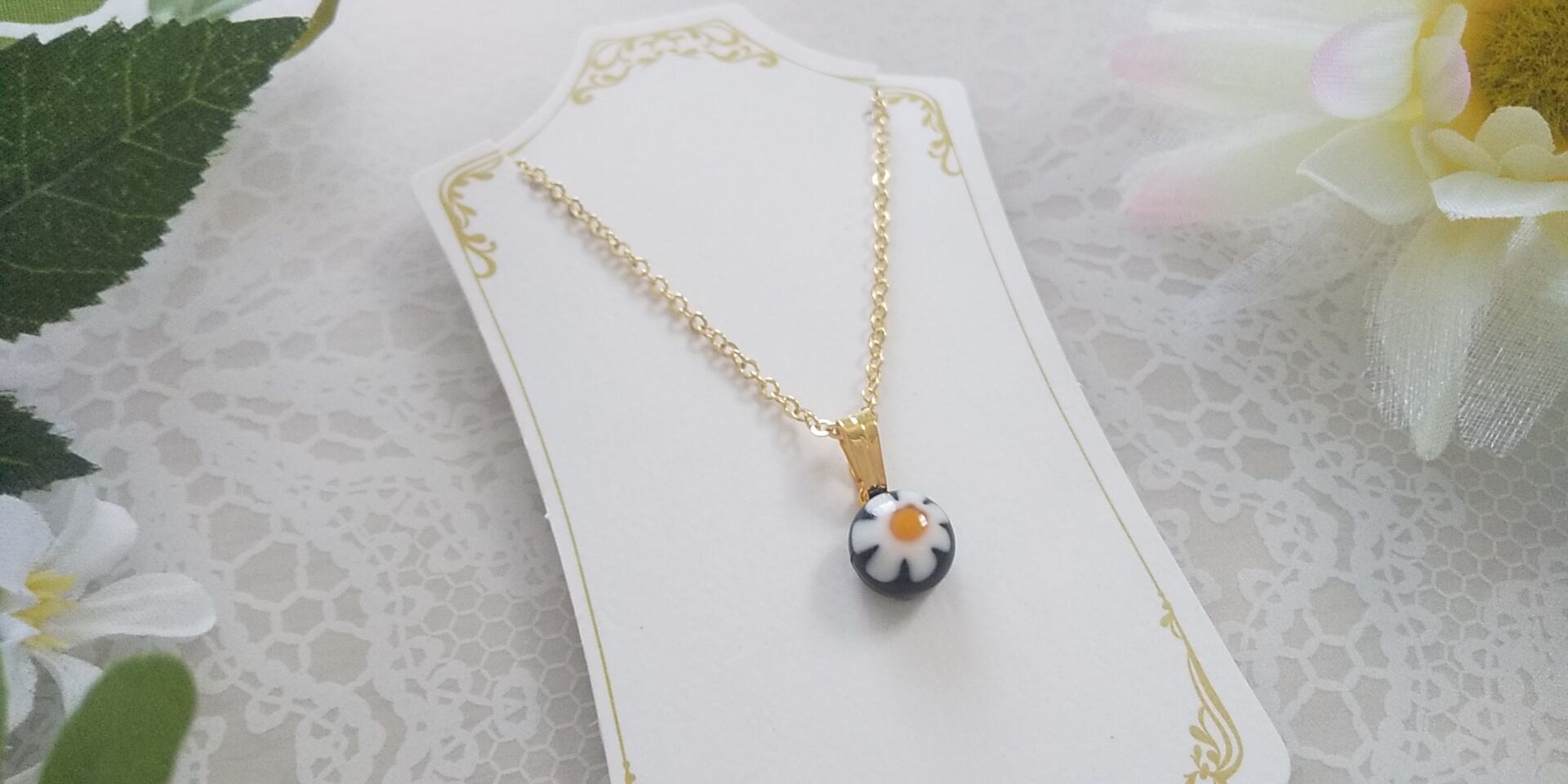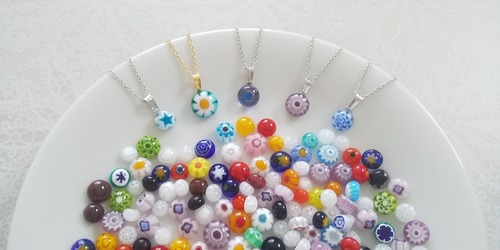 ワンポイントが可愛いミルフィオリネックレスになります。フォーマルな服装にも素敵に魅せてくれますよ。