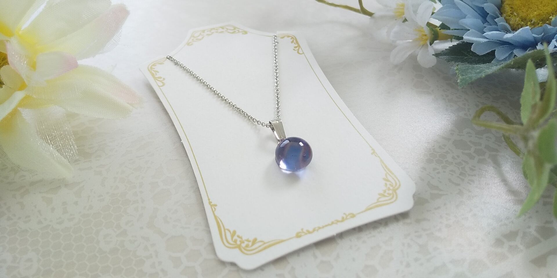 ワンポイントが可愛いミルフィオリ一粒ネックレスになります。