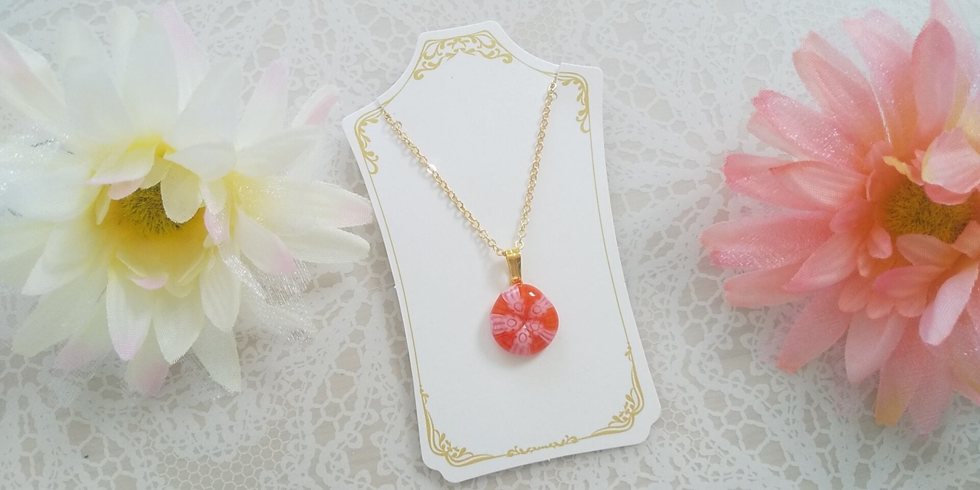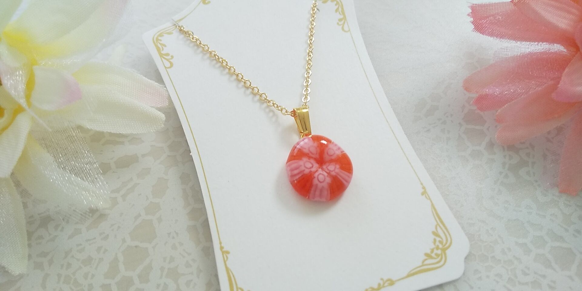 新作のお花模様がサイドにあるミルフィオリネックレスになります。