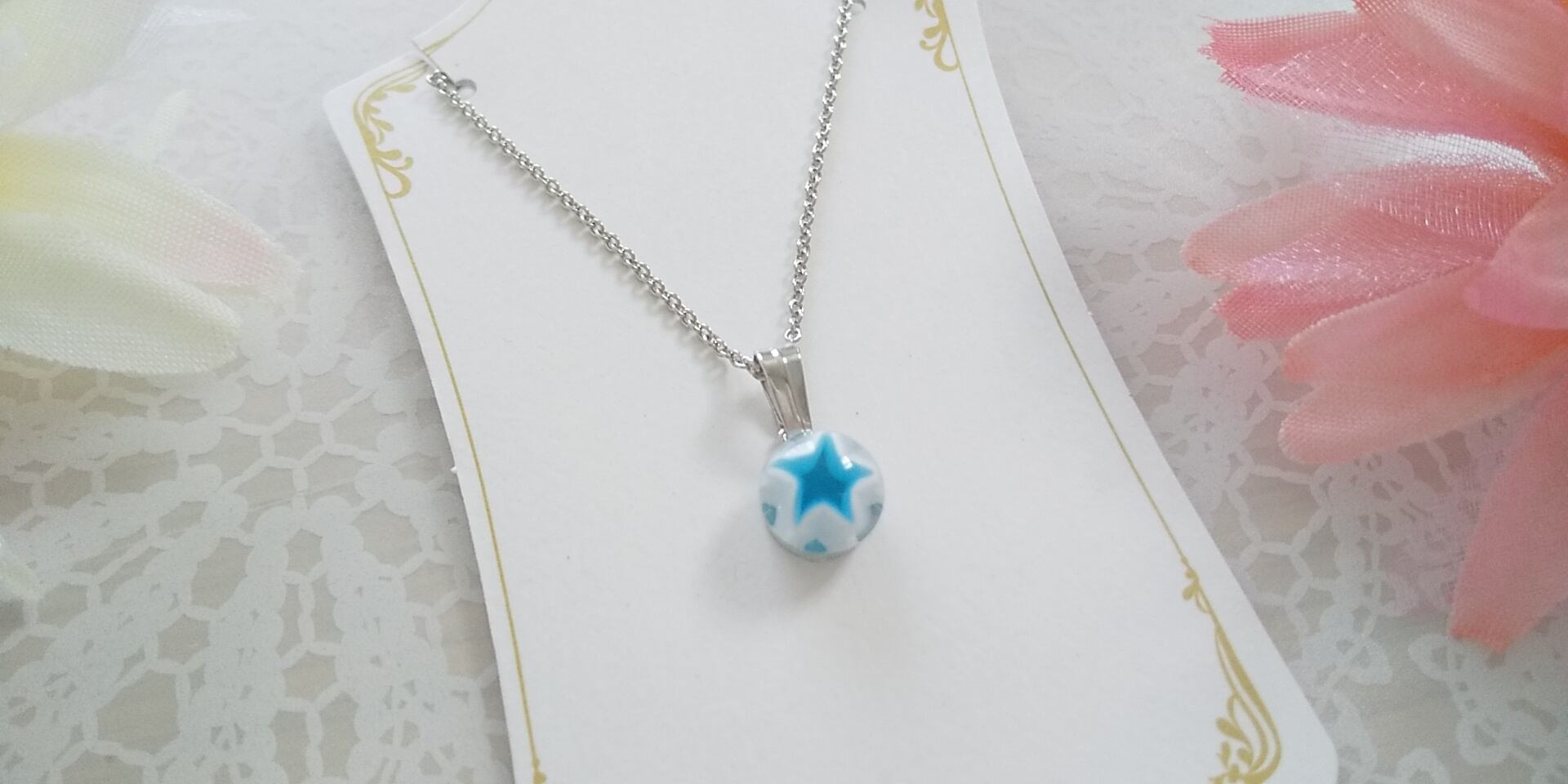 ワンポイントが可愛いミルフィオリネックレスになります。フォーマルな服装にも素敵に魅せてくれますよ。